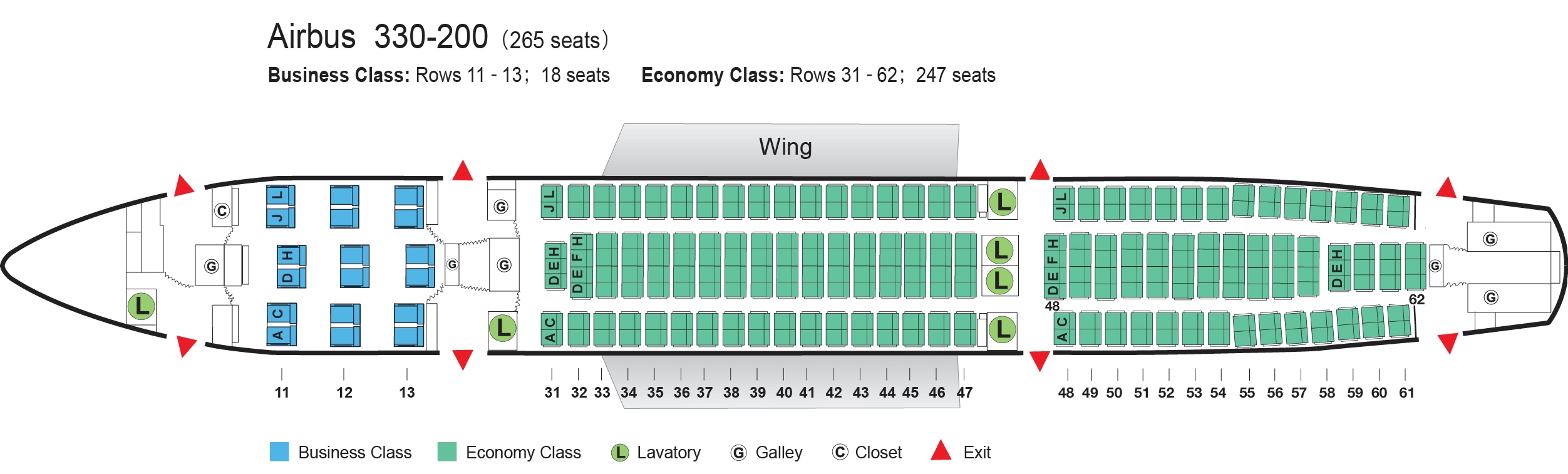Total Seats | Business Class | Premium Economy Class | Economy Class |